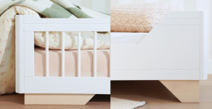 So kann das Bett zunächst als klassisches Babybett genutzt werden und später – ohne Gitter – als Kleinkinderbett.